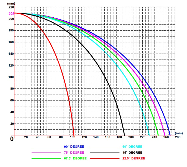 Amplio rango de ángulo de 22,5° a 112,5° con puntos de ubicación rápidos a 45°, 90° y 135°.