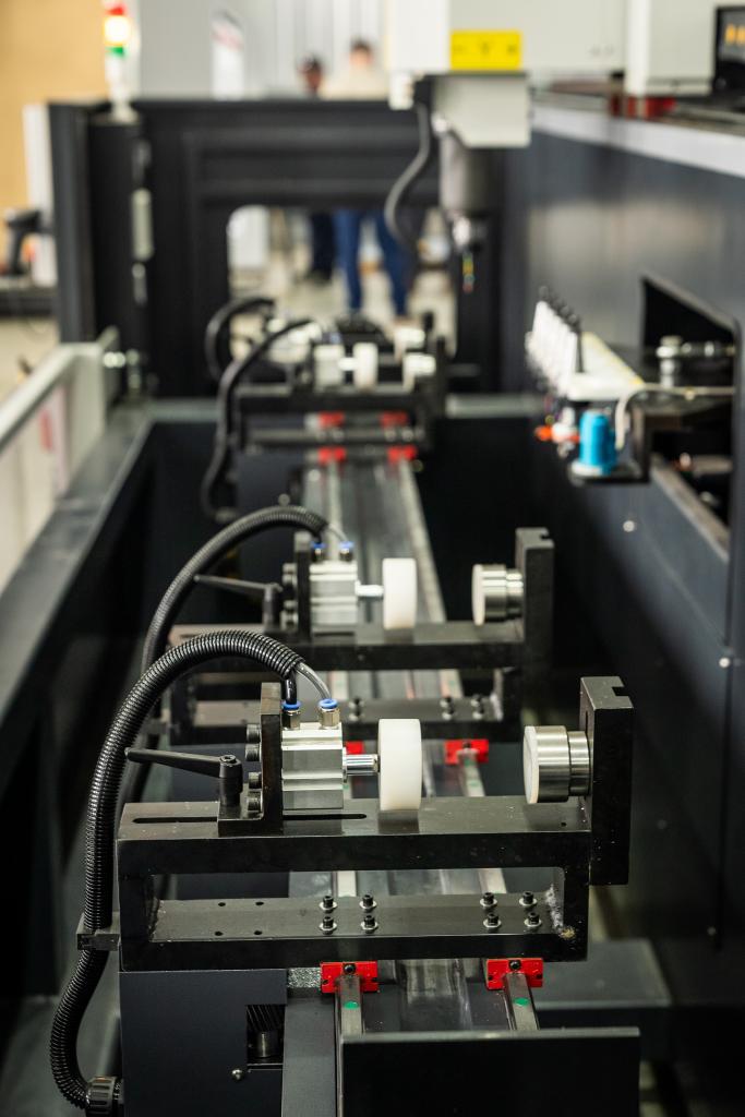 4 clamps neumáticos de posicionamiento automático totalizando 8 ejes CNC para una operación automática completa (cada clamp con servomotor)