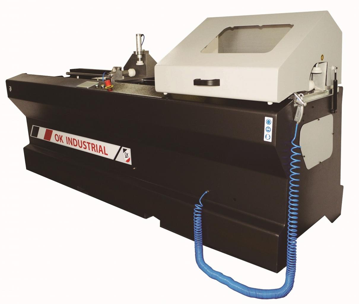 Cortadora automática con alimentador automático de barra para el corte secuencial y seriado de piezas de aluminio y plástico a 90º.