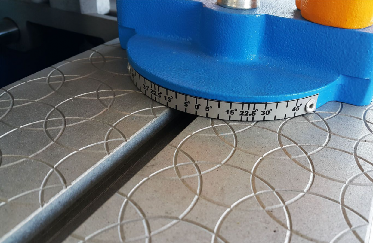 Sujeción de la pieza a mecanizar mediante 2 pistones neumáticos.