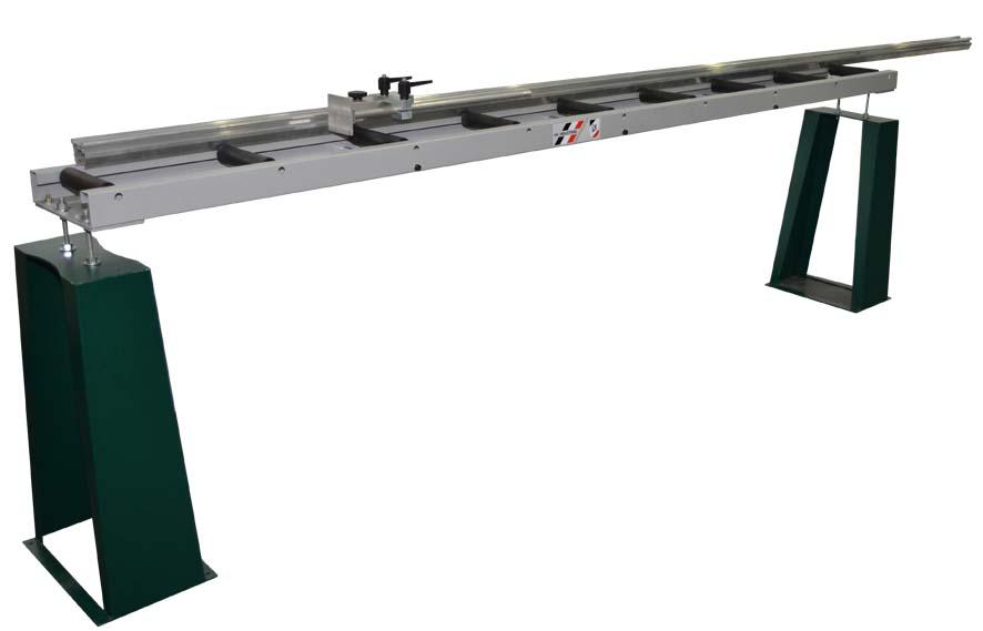 Denominada “Mesa de Salida”. Incluye tope registrable con regla de medición. 4 mts. en total y medición útil aprox. 3.7mts. Posee rodillos de plástico de alto impacto inyectados para la protección del perfil.