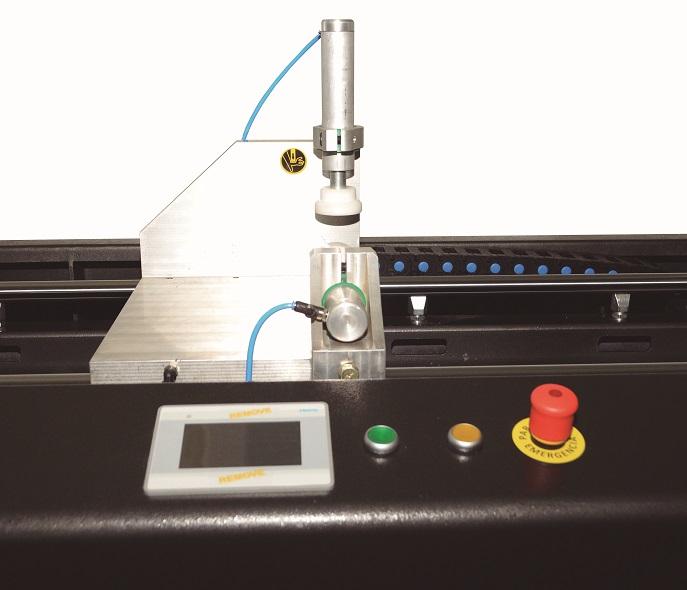 - Corte con cabezal ascendente de avance automático, accionado por cilindro eléctrico controlado por servomotor, lo que permite control de alta precisión en cuanto a velocidad de avance , cantidad de avance (alto de corte ) y fuerza de avance .