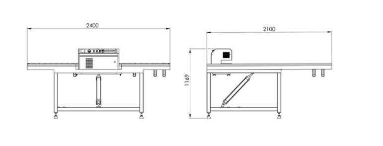 Posee mesa de apoyo basculante con topes neumáticos para escuadrado de los cristales.